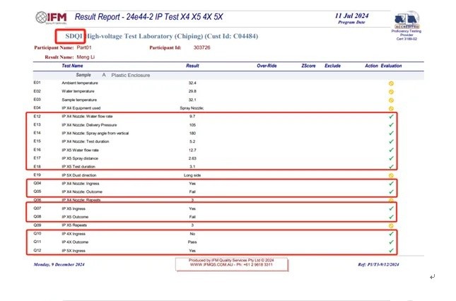 近日,澳大利亚能力验证计划提供者IFM发布能力验证分析报告,我院国家输配电设备质量检验检测中心(山东)(以下简称国家输配电质检中心)作为CB实验室参与的“防护等级测试X4、X5、4X、5X”能力验证结果均为“GOOD”。