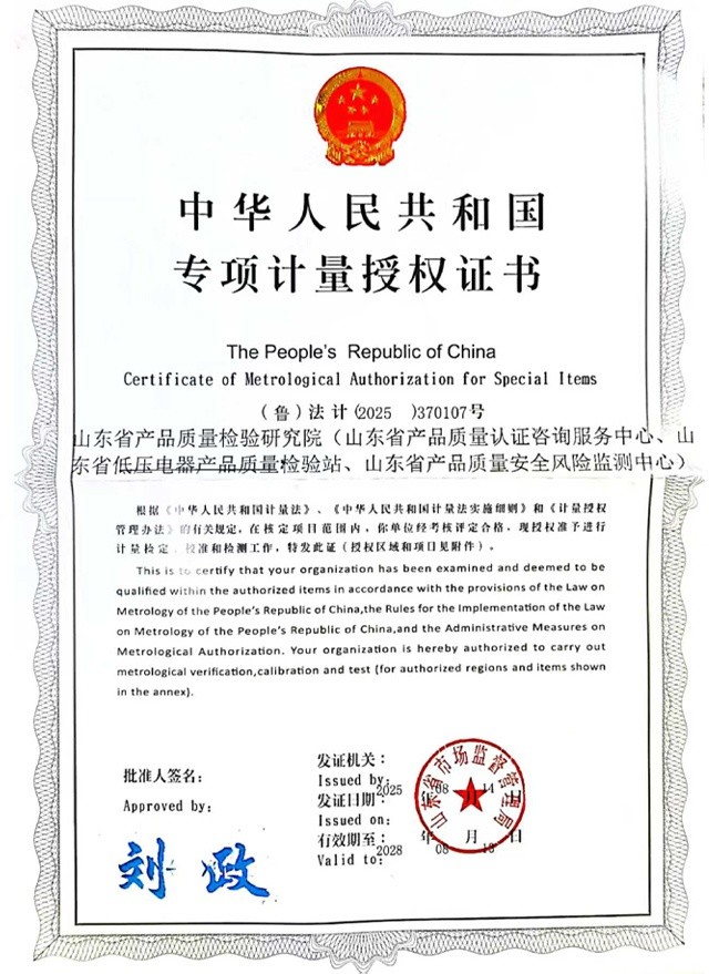 专项计量授权证书